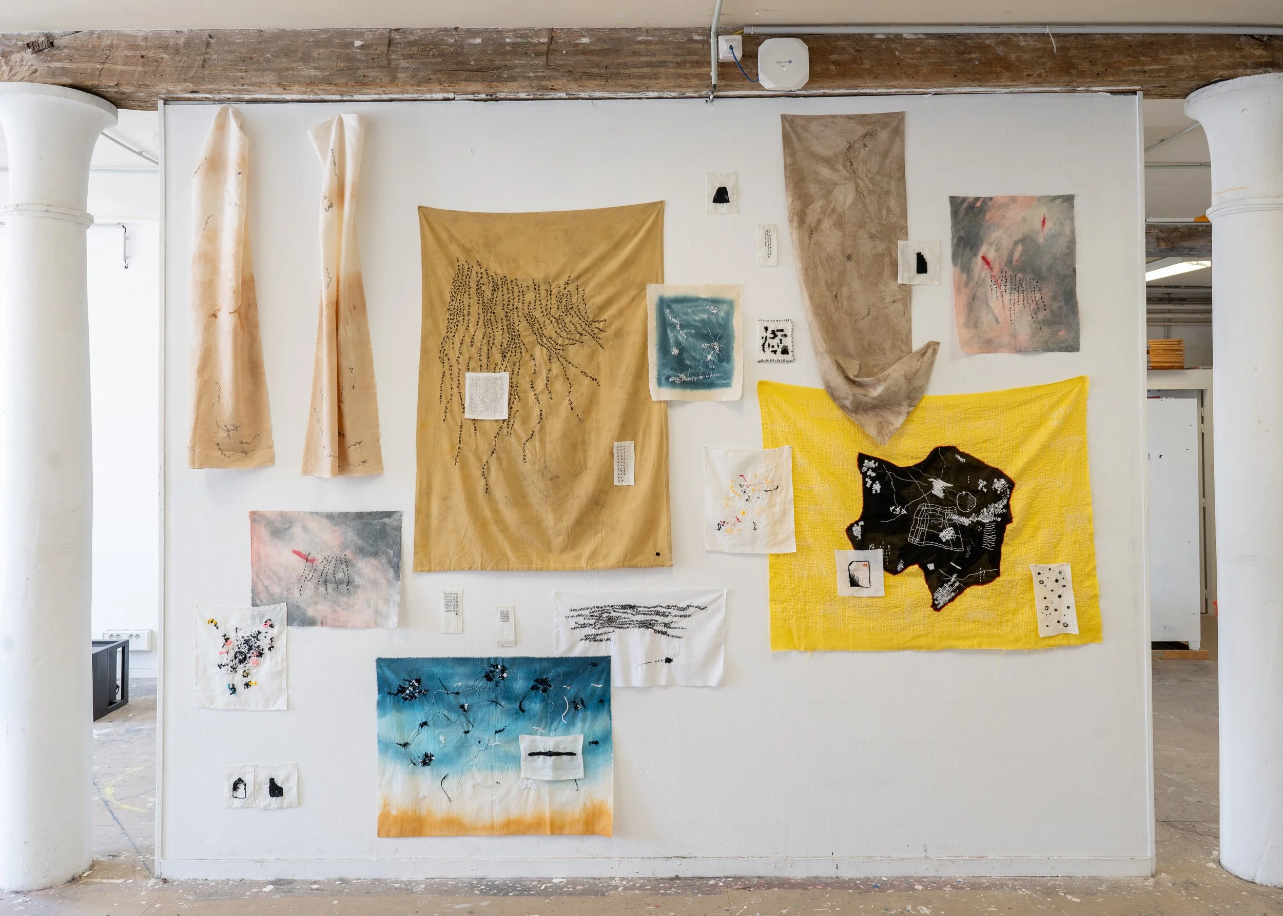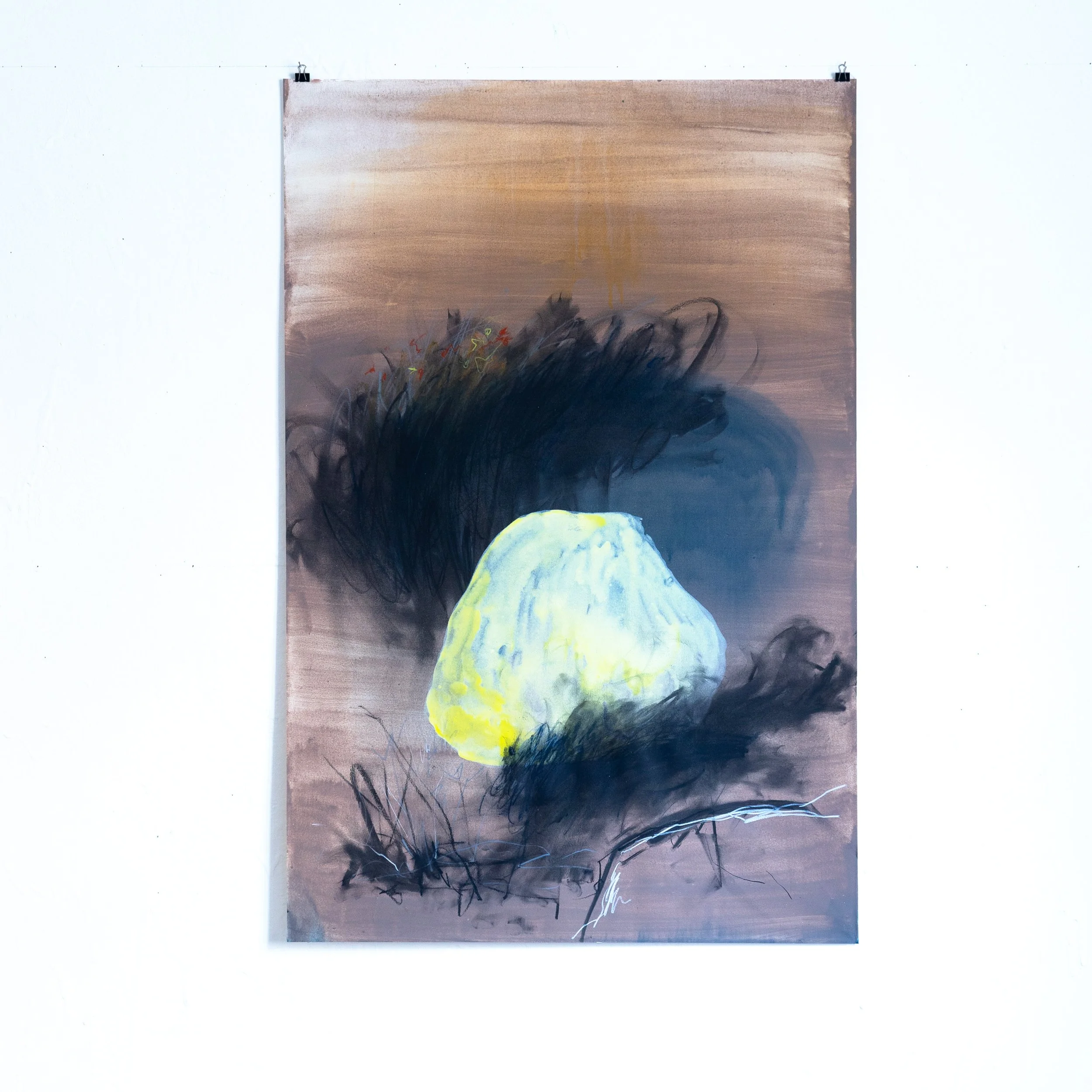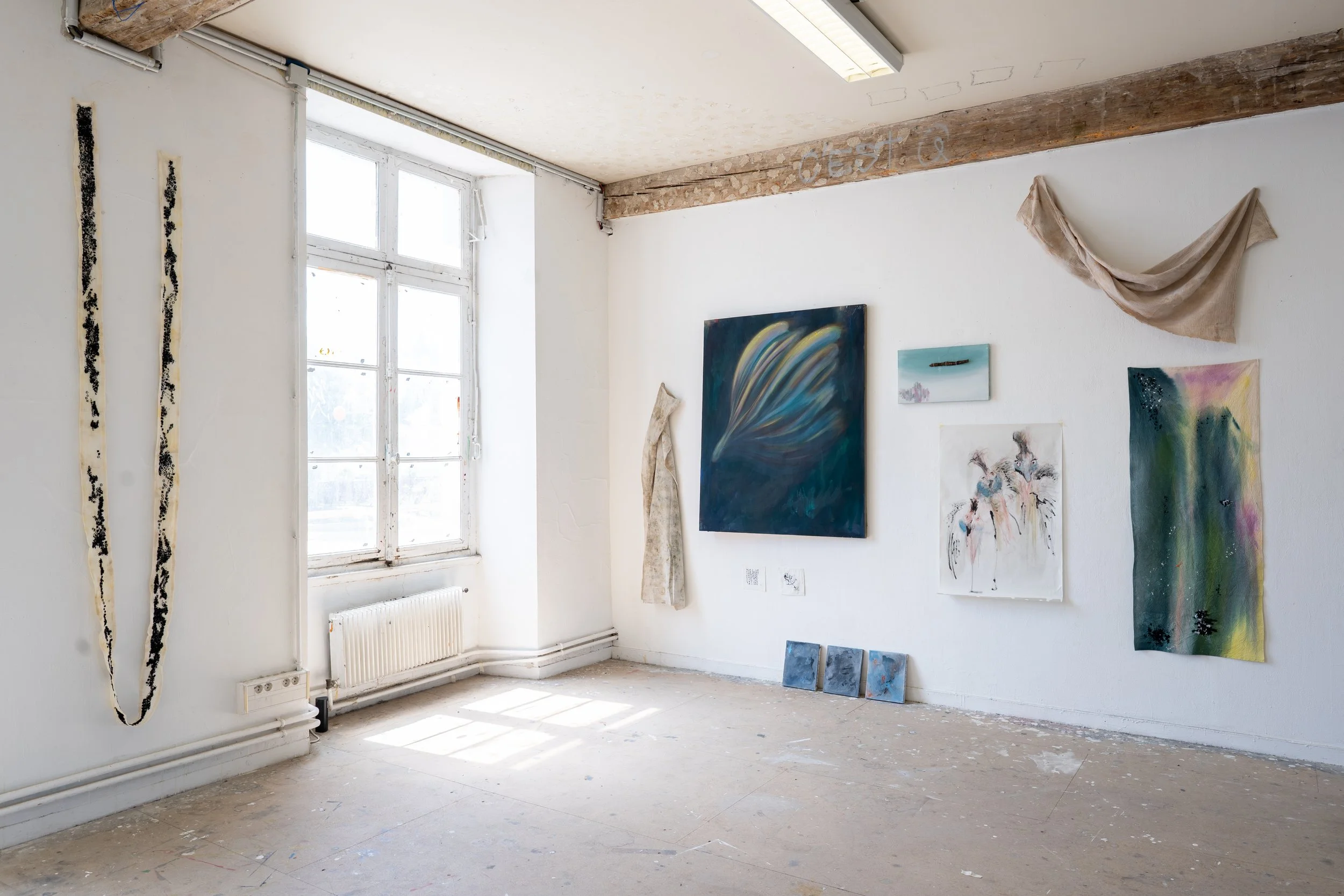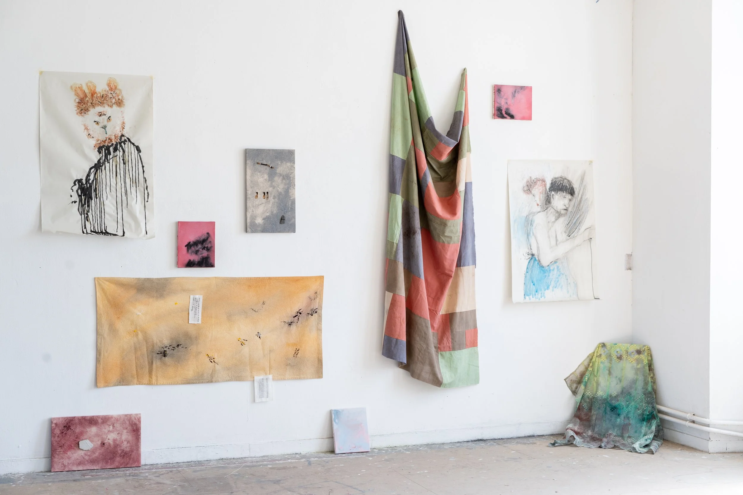 In Taoist alchemical practice, the universe is composed of five essential elements: fire, water, earth, metal, and wood. These elements extend beyond the material, structuring systems of knowledge across astrology, medicine, divination, and philosophy. Gaston Bachelard’s elemental essays explore their intimate connection to the human psyche and imagination. Consciousness itself can be understood as a shifting constellation of images, texts, emotions, and sounds—intertwined in ways both visible and hidden. My BFA diploma exhibition at ENSA Bourges, set within a former convent, responds to this cosmology. Five walls of paintings, drawings, and textiles correspond to the five elements, forming an immersive environment imagined as the interior of an alchemical vessel. Within this space, transformation, formation, and decay occur simultaneously. Each wall acts as a “living painting,” shaped by a specific moment in time and space.